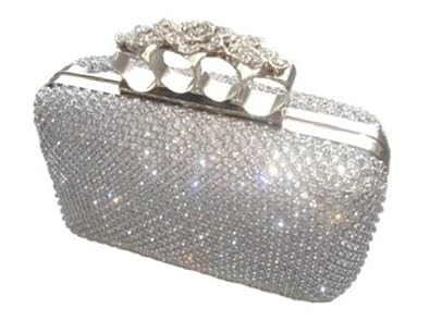 Dazzling Silver Diamante Flower Knuckle Evening bag Clutch ...